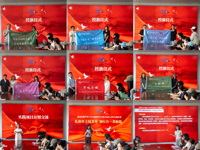 会上,指导教师为实践团队授旗,与会师生围绕项目筹备与方案设计进行交流互鉴。在专题培训环节,团委书记徐宇瞳从全流程管理角度提出具体要求,重点强调“成果实体化、传播立体化、项目品牌化”三大目标。