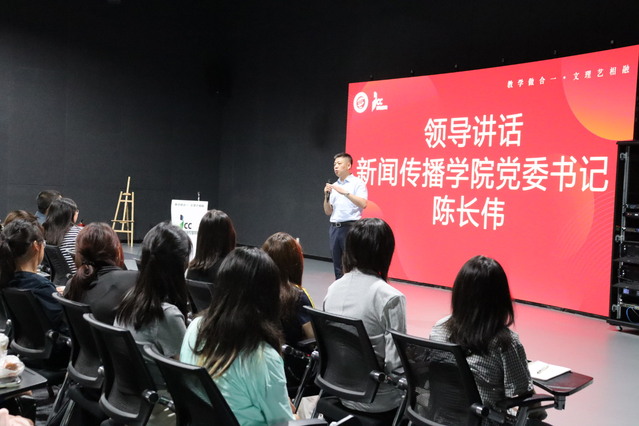 学院党委书记陈长伟在最后总结讲话中对学院师资队伍、办学理念及人才培养特色进行了全面介绍。他指出学院致力于培养“厚基础、重实践、国际化”的复合型传媒人才,希望同学们要理论与实践并举,于网络中传播正能量、传播主流价值观,争做与时代同向、与祖国同行、勇担历史使命的追梦人。