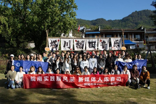 2025年10月27日至29日,新闻传播学院2023级广播电视学、2022级广电转本、2023级网络与新媒体专业54位师生奔赴安徽省黄山市黟县秀里、屏山、西递、宏村、塔川等地,开展野外实践课程的教学实践活动。同学们足迹踏遍古村镇的角角落落,沉浸在皖南秋色之中,皖南的灵秀山水、徽派建筑和人文历史与年轻的心灵产生了奇妙的共振。在三天的野外实践中,同学们观察时代,记录生活,寻找报道选题,挖掘创作灵感,精进专业技艺,践行了教学做合一、行而后知、行而后能的教育理念。