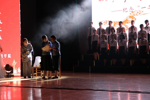 朗诵是有声语言的一种艺术形式,离不开台上每一位同学情感、节奏上的配合,更离不开台下老师们和学生会成员们的精心构思和辛勤付出。《野菊·一九三五》作为我院的朗诵篇目,凸显了我院师生对历史的深刻感悟和热切的爱国情感。如今,我国社会主义建设进入新时代,但思想道德建设依然方兴未艾,身为新时代的青年学生,我们必须传承和弘扬一二·九爱国精神。