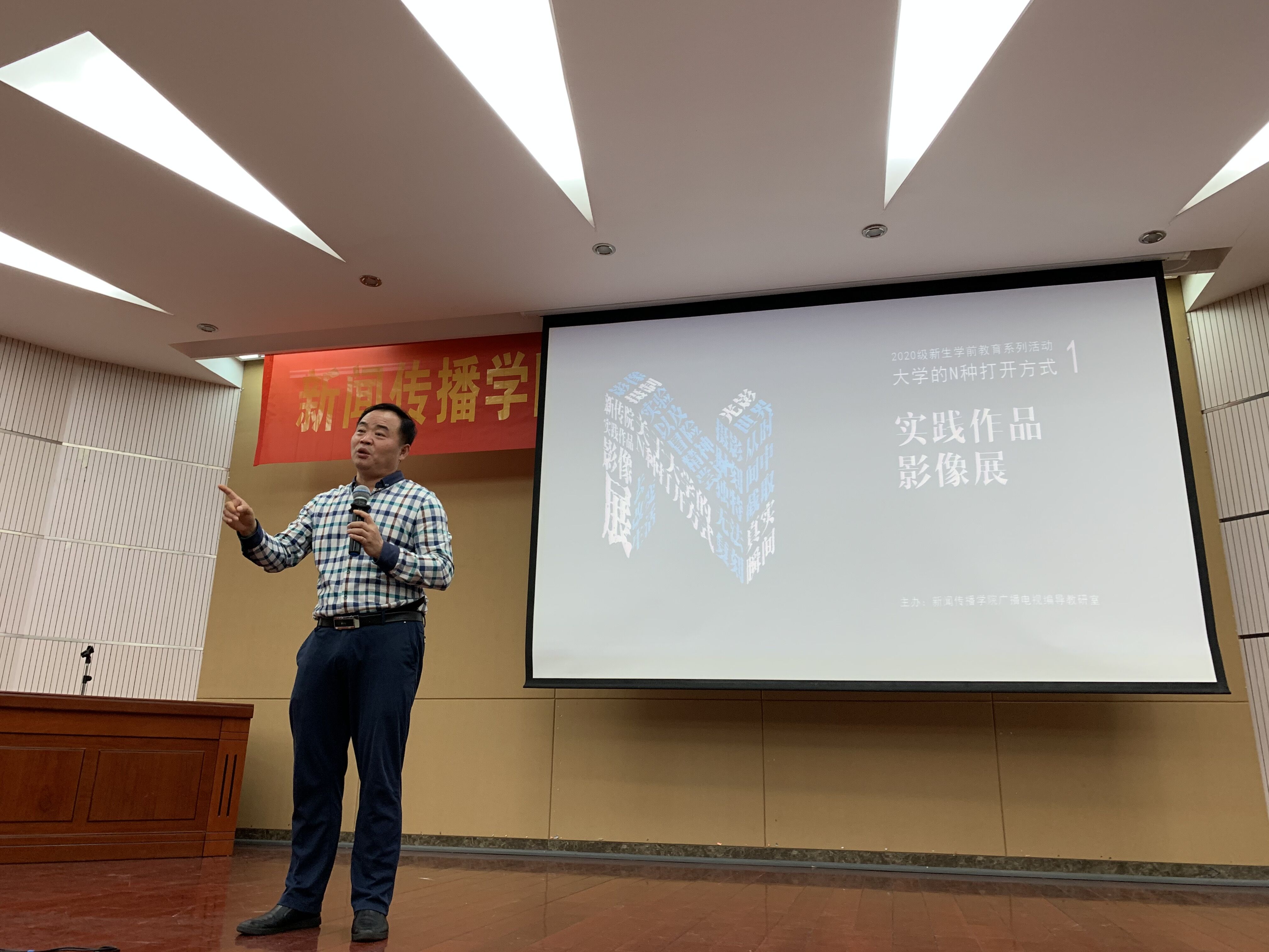 10月6日晚,广编专业2020级新生入学专业教育系列活动“大学的N种打开方式”第一场——实践作品影像展——在莫愁校区1401礼堂成功举办。