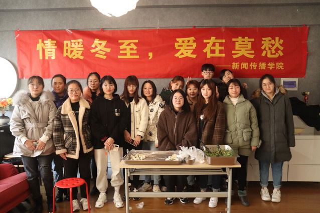 12月20日,冬至即将到来之际,新传院学生会志愿服务部于莫愁校区2号楼创作室举办了“情暖冬至 爱在莫愁”包饺子活动,学院党总支负责人也来到现场参加了活动。