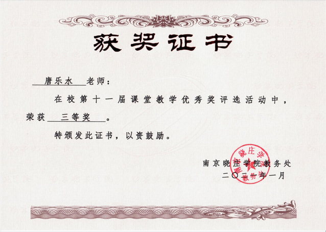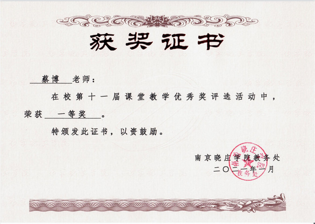 在刚刚结束的“南京晓庄学院第十一届课堂教学优秀奖”评比中,新闻传播学院教师获得佳绩:蔡博老师获得一等奖,唐乐水老师获得二等奖。