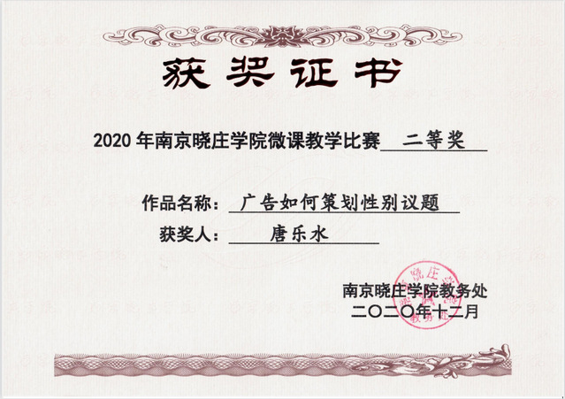 新闻传播学院唐乐水老师获得2020年校微课教学比赛二等奖