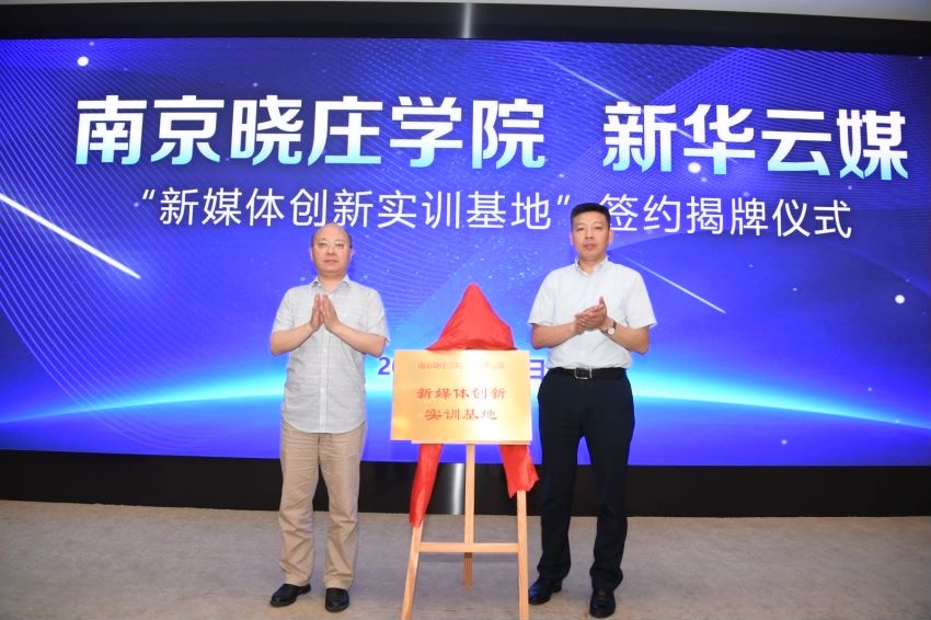 6月22日,南京晓庄学院新闻传播学院与新华云媒(交汇点新闻)“新媒体创新实训基地”正式签约、揭牌。校媒牵手共同打造联合媒体、高校及企业构建的创新型实习实训基地,以“资源集约、优势互补、共谋发展”为原则,在人才培养、“产学研”机制创新等方面开展合作。