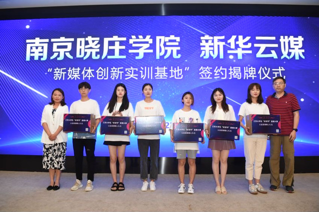 6月22日,南京晓庄学院新闻传播学院与新华云媒(交汇点新闻)“新媒体创新实训基地”正式签约、揭牌。校媒牵手共同打造联合媒体、高校及企业构建的创新型实习实训基地,以“资源集约、优势互补、共谋发展”为原则,在人才培养、“产学研”机制创新等方面开展合作。