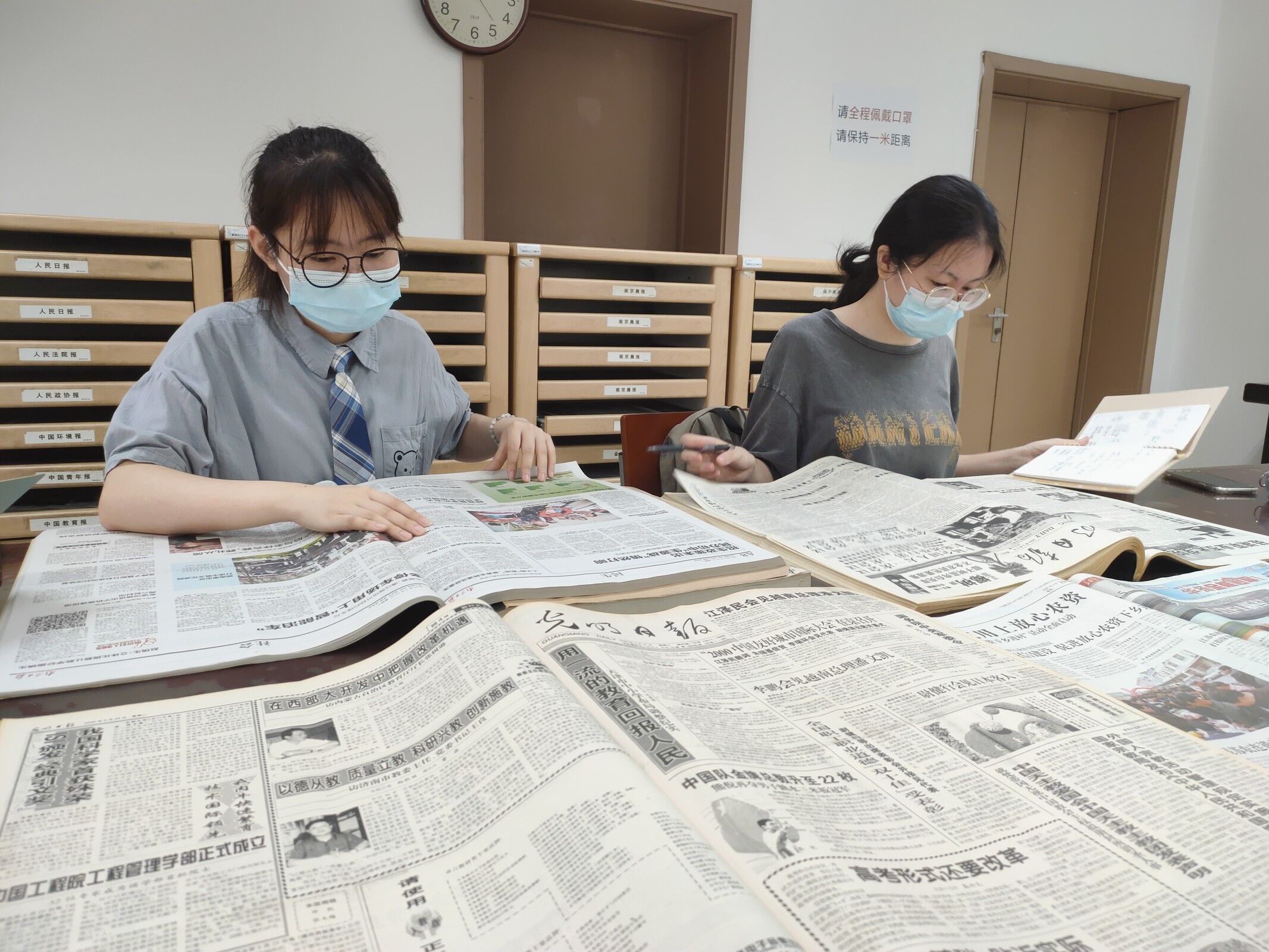 7月初,实践活动正式开展,学生分批次到南京图书馆典藏报刊阅览室、现刊阅览室、电子阅览室进行查阅、摘录工作。报纸是历史的日记,一份份泛黄的报纸,展现的是波澜壮阔的社会变迁。新闻传播学院的学生在课堂上掌握了许多关于传媒发展的理论知识,此次活动让他们有了更加直观地感受。报纸从黑白版面到彩色版面,图片新闻中人们的衣食住行的变化等都能反映生产力的发展和人民生活水平的提高。学生从旧报纸中搜索党史校史事迹,将学习党史校史与专业特色相融合,通过观察纸媒变迁、搜集党史校史相关报道、采访图书馆工作人员和读者,将专业理论认识转化为实践收获,增进爱国主义情感,增强对晓庄学院的归属感,增添对新传院的认同感。