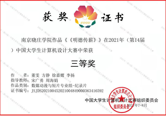 新传院学生在2021年中国大学生计算机设计大赛中获奖