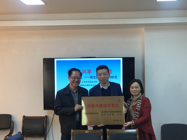 为深入贯彻习近平新时代中国特色社会主义思想,落实校党委高质量党建促高质量发展的要求,11月30日下午,新闻传播学院教师一支部与江苏经济报党支部在2号楼会议室召开支部共建仪式。江苏经济报社长吴剑飞、新闻传播学院党总支书记陈长伟、报社党支部成员与学院教师一支部党员老师参与活动。会议由教师一支部书记马彧老师主持。