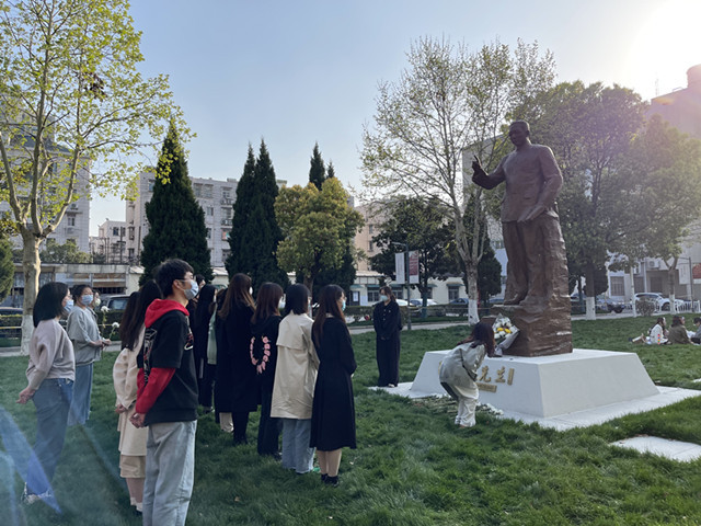 清明节当日,我院团委组织学生在319集体观看《英魂颂》、话剧《陶行知》,随后前往陶像前举办祭奠仪式。同学们一一向陶像献上鲜花,纪念老校长陶行知,缅怀大先生,并在老校长前宣誓,继承老校长的遗志,学习和发扬老校长的“捧着一颗心来,不带半根草去”的大爱精神,奉献自我,知行合一。