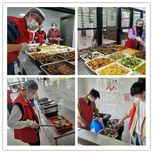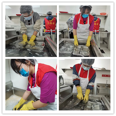 从清晨到傍晚,从公寓到食堂,同学们全天全身心投入在协助校工的志愿服务工作中。在食堂,志愿者们承担起搬运菜品、饭菜准备、打饭打菜和卫生清洁四项工作。在公寓,志愿者们负责协助宿管阿姨做好日常记录,帮助物管打扫公寓内外的卫生。同学们的劳动热情高涨,工作认真负责,获得了校工们的一致好评。