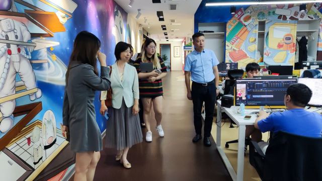 小灿灿新媒体公司负责人对校领导一行表示热烈欢迎,并简要介绍了公司的发展历程、主营业务、未来发展规划、新媒体发展状况及人才需求情况。她向学校多年来为企业输送优秀人才表示感谢,对未来基于校企合作开展新媒体课程建设、人才培养、产教融合等进行了展望发挥各自优势、共同促进发展。