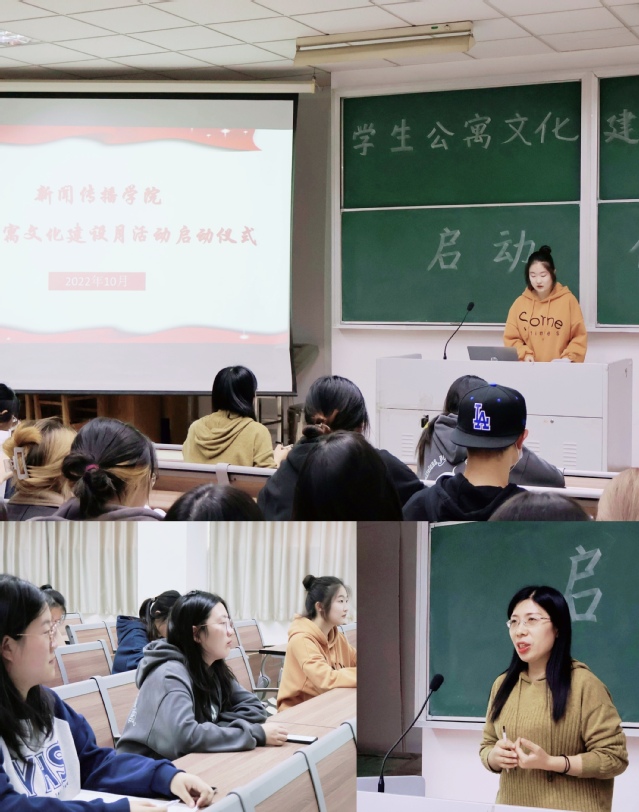 为落实立德树人根本任务,加强环境育人建设,持续推进公寓文化提升,营造同学们共同良好的生活氛围,10月26日中午,新闻传播学院在1号楼102教室举行了学生公寓文化建设月活动启动仪式。学院公寓管理负责老师、学生会生活部部长及全体班级生活委员参加了此次会议。