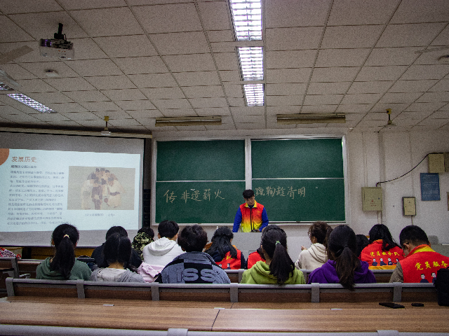 清明时节雨纷纷,非遗薪火永相承。为弘扬中国优秀传统文化,坚定文化自信心,4月4日下午,新闻传播学院学生党支部组织了“传非遗薪火,蹴鞠趁清明”主题党日活动。来自学院的三十余名党员师生和积极分子参与了此次活动。