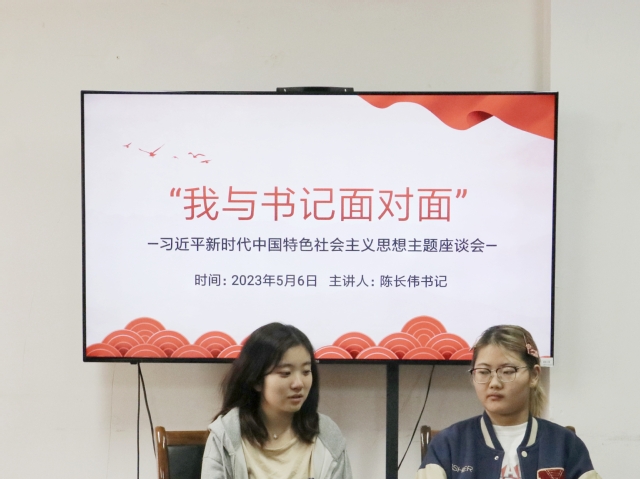 学习贯彻习近平新时代中国特色社会主义思想,聚焦制约人才培养质量原因、聚焦学生反映诉求,新闻传播学院结合学习贯彻习近平新时代中国特色社会主义思想主题教育总体安排,5月6日中午在莫愁校区2号楼319会议室举办“我与书记面对面”主题座谈会,新闻传播学院党总支书记陈长伟、辅导员徐宇瞳出席本次座谈会,与任职于院团委学生会、专业社团和班级的40余位主要学生干部亲切交流。