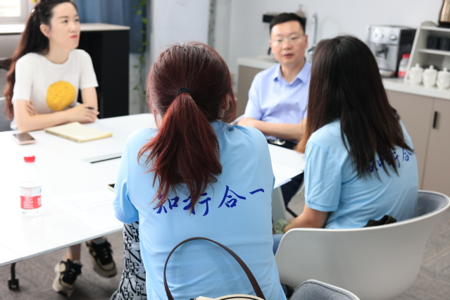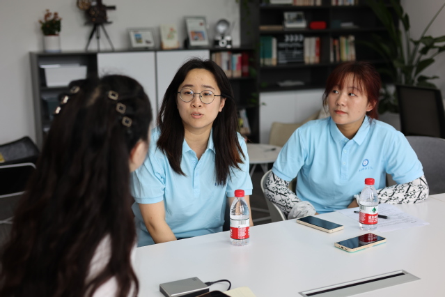 调查团队与金陵中学河西分校融媒体中心负责人糜梦逸老师深入沟通,队员们了解到融媒体中心根据不同年龄段的学生开展了不同的媒介素养课程:小学生开设了“金陵小主播”课程,注重打造媒介认知和内容表达;初中生开设新闻采编类课程,注重培养信息意识、理性思维和人文情怀;高中生开设模拟新闻发布会课程,注重培养学生的批判性思维。学生在相关课程和实践活动的开展中,不仅学习到了媒体制作的基础知识,还培养了一定的媒介实践能力。