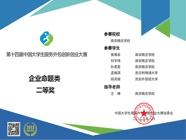 我院学子在第十四届中国大学生服务外包创新创业大赛全国赛中荣获国家级二等奖
