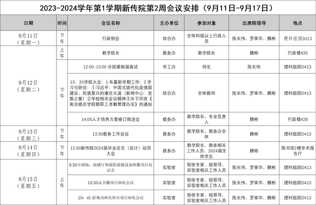 2023-2024学年第1学期新传院第2周会议安排(9月11日-9月17日)