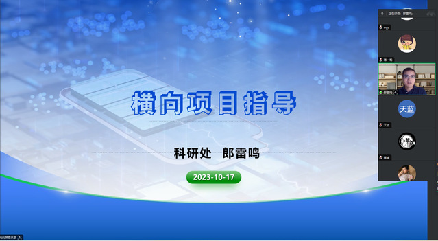 为鼓励教师参与横向课题研究,促进学院横向课题的开展,10月18日晚,新闻传播学院线上召开横向项目培训会议。会议邀请学校科研处副处长郎雷鸣主讲,院长罗荣华主持会议,相关老师参会。