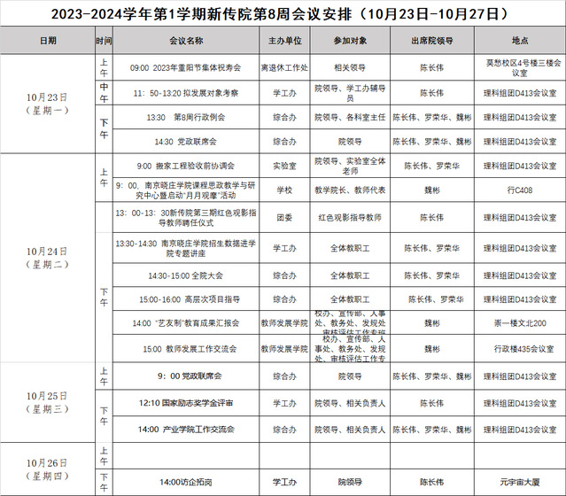2023-2024学年第1学期新传院第8周会议安排(10月23日-10月27日)