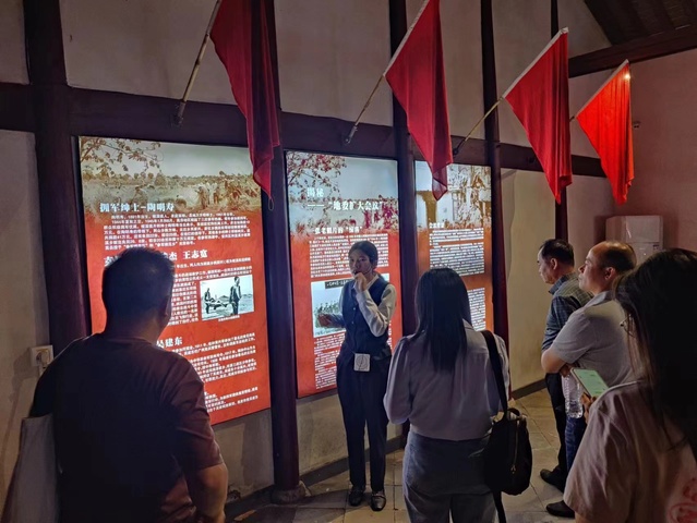 学院首先集体参观高淳高岗村,这里是清华大学乡村振兴(高淳)工作站,是社会主义新农村代表。党员师生们在走访参观中观赏了承载农耕文明、富有当地特色的现代文明乡村,深刻领悟社会主义新农村的振兴。随后,学院集体前往被称为“苏南抗日红色堡垒”的革命老区西舍村。革命初期,新四军16旅和苏南地委在西舍村建立溧高县抗日民主政府,成为溧高县委乃至苏南三地委活动的中心。革命前辈们在此地建立抗日游击根据地,设立学校、抗日兵工厂、纺织厂等,抗击日伪军,开展减租减息、扩武招兵、剿匪反霸等工作,在苏南抗日战争史上留下了浓墨重彩的一笔。党员师生们在革命历史遗迹,亲身体验了革命先烈们的艰苦卓绝的斗争精神。