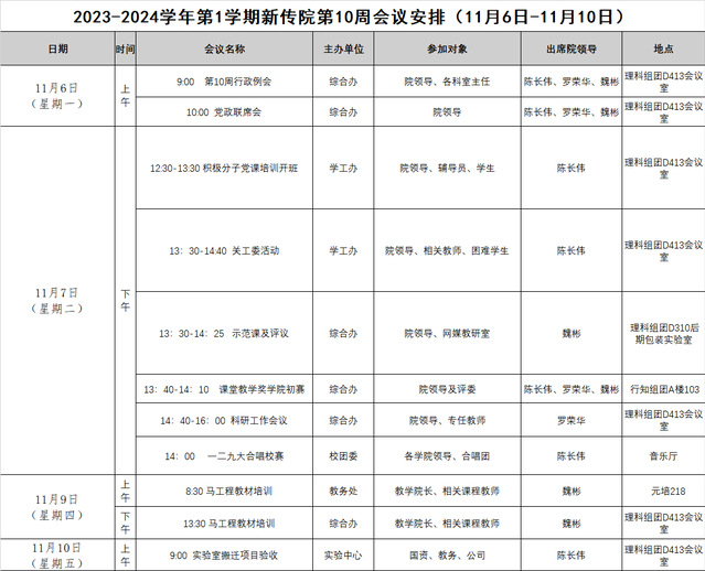 2023-2024学年第1学期新传院第10周会议安排(11月6日-11月10日)