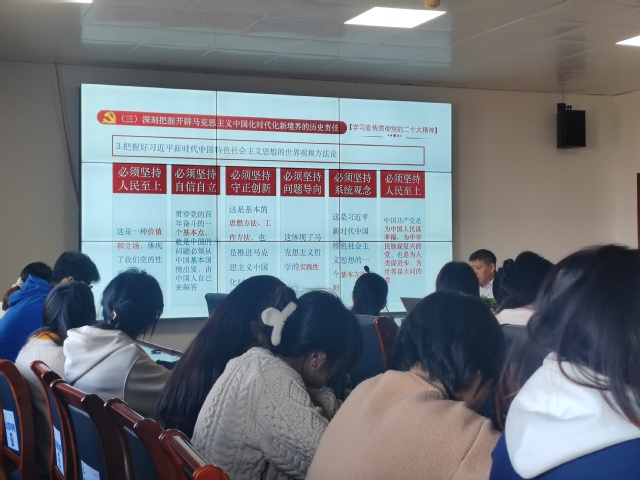 本次活动的开展,探讨了“如何认识党的精神、如何学习党的作风、如何成为一名心中有党的合格大学生”。强调了同学们入党的初心与使命和对自身言行举止的规范,也对同学们深入思考“为什么入党”这一问题起到了引导作用。通过解读学习党的二十大精神,作为新时代的大学生,我们要与时代的脉搏同频共振,主动学习党的思想与精神,积极向党组织靠拢,成为一名合格的大学生。