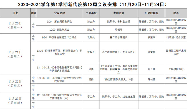 2023-2024学年第1学期新传院第12周会议安排(11月20日-11月24日)