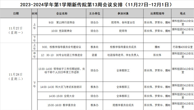 2023-2024学年第1学期新传院第13周会议安排(11月27日-12月1日)