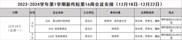 2023-2024学年第1学期新传院第16周会议安排(12月18日-12月22日)