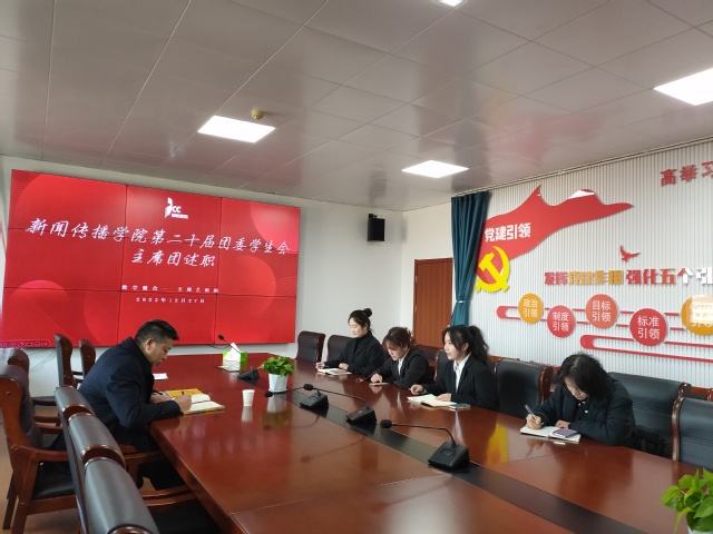 为进一步加强学生干部队伍建设,增强新闻传播学院团委学生会组织建设建设引领力和服务力,坚持“全心全意为同学服务”的宗旨,促进团委学生会工作的高质量发展,12月27日和29日,新闻传播学院团委学生会在理科组团D314会议室依次召开2023年主席团、部长团述职总结大会。学院党委书记陈长伟、团委书记徐宇瞳、团委学生会主席团成员以及各部门部长和干事参与会议。