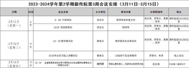 2023-2024学年第2学期新传院第3周会议安排(3月11日-3月15日)