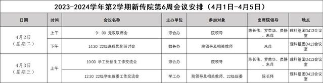 2023-2024学年第2学期新传院第6周会议安排(4月1日-4月5日)