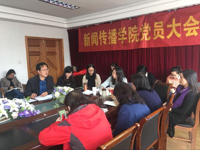 2018年4月17日,新闻传播学院党总支召开基层党组织换届选举工作动员会,学院党总支书记姚群民主持会议,全体教工党员参加。