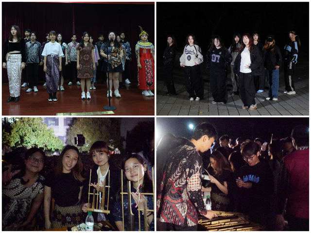 活动以节目表演和游园会的形式开展,国内大学生与来自印尼、泰国等国家的留学生轮流献上精彩演出。中文独唱《身骑白马》、傣族舞蹈《月之花语》让现场观众感受到了中华文化的独特魅力,中泰合唱《Whatever》、印度尼西亚传统达雅克舞蹈、印度尼西亚民歌合唱、群舞《Rising》让观众领略了他国文化,现场其乐融融、气氛高涨。在节目演出之后,学生们来到户外游园区,体验不同国家特色美食、服饰和音乐文化,打卡中式投壶、中国书法和各类趣味游戏,百位学子手持集章卡,穿行于各个展台,沉浸式感受多元文化的交流与融合。