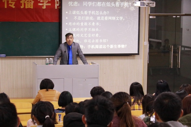 吴翔教授以“智能手机时代的大学阅读问题”为主题,从生活中的普遍现象出发,说明手机时代已经到来,引出了讲座的内容。