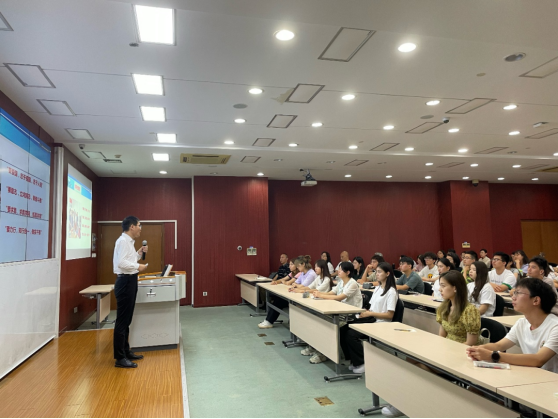 课堂第一环节由上海对外经贸大学马克思主义学院罗国辉副教授主讲,他通过古往今来的事例,从何为爱国、为什么要爱国、怎样爱国三个方面系统讲解了新时代爱国主义的内涵,以及青年大学生的爱国体现与责任担当。