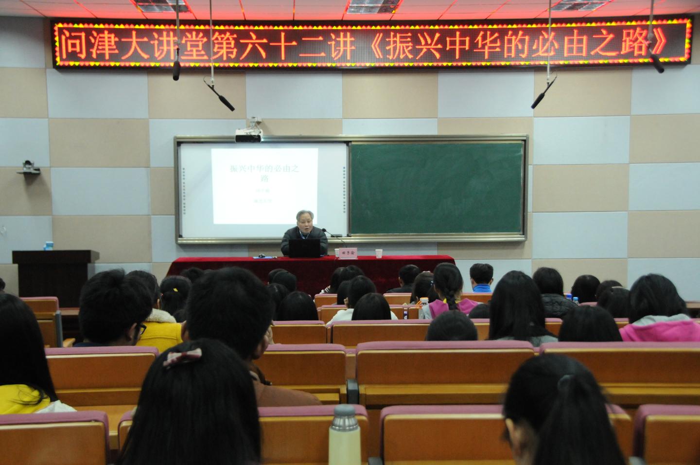 3月16日晚,湖北大学马克思主义学院博士生导师、华中师范大学、南京师范大学兼职教授田子渝应邀做客问津大讲堂,作了“振兴中华必由之路”的主题报告。
