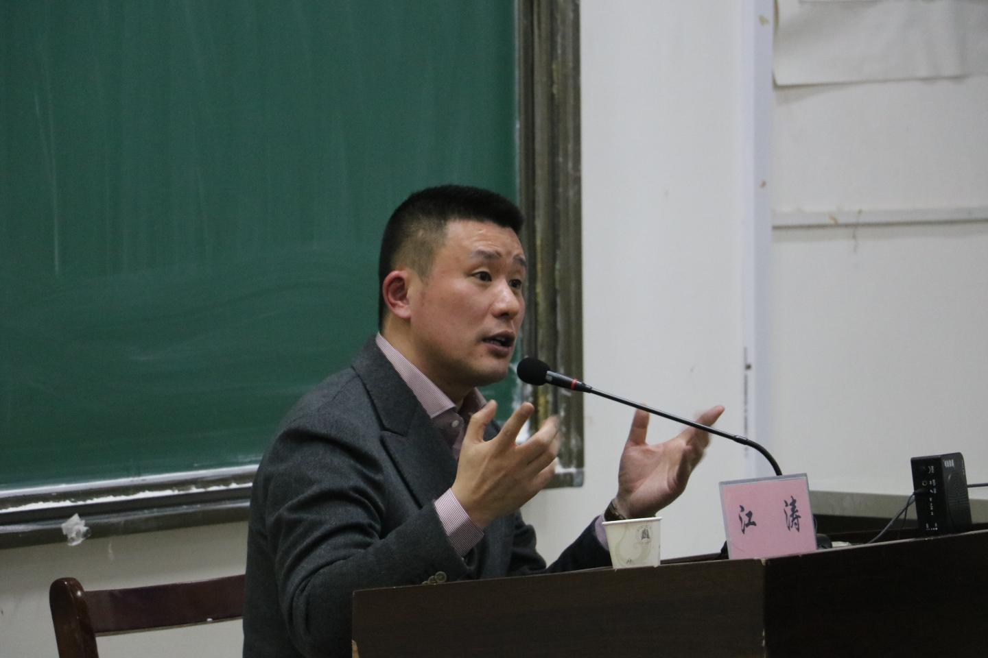 江涛与现场师生分享了自己23年的从业经历。他说,当今时代,要做一个有思想、有温度、有品质的新闻人;要做有温度的新闻,就是要贴近实际,贴近生活,贴近群众。谈到当今时代新媒体对传统媒体的冲击,江涛认为,随着当下新媒体的发展,传统媒体虽然日渐萎缩,但仍然有其强大的公信力;新闻工作者,是公平正义的守门人,是时代前行的瞭望者,一定要有自己的新闻理想,通过有价值的劳动,为社会带来进步、正义和温暖。