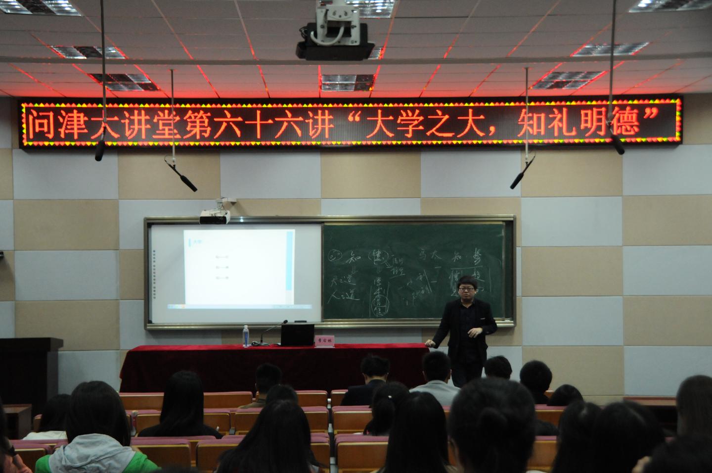 3月24日晚,人民日报社国家治理周刊首席记者李习林做客问津大讲堂,作了“大学之大,知理明德”主题报告。