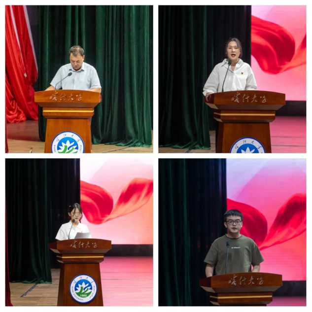 实习支教班主任代表、指导教师代表及学生代表在大会发言。