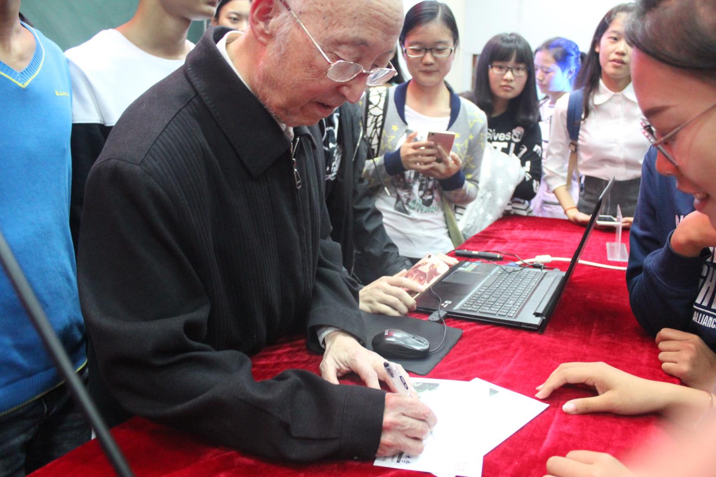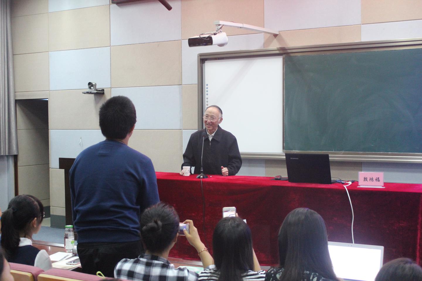 在互动环节,同学们积极提问,现场气氛十分活跃。被问及在大学时代的求学感触时,殷鸿福院士这样作答:“我的大学时期是处在既平静又动荡的时刻,我觉得这个四年非常有益,希望你们走过立志—选择—最后定性的过程,拥有各自精彩的人生。”