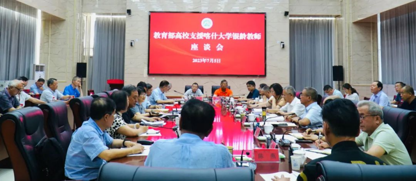 当天下午,教育部离退休干部局党委书记、局长于虹和副书记、副局长潘俊强分组与教育部高校支援喀什大学银龄教师、支援高校和喀什大学二级学院、进行深入的交流座谈。