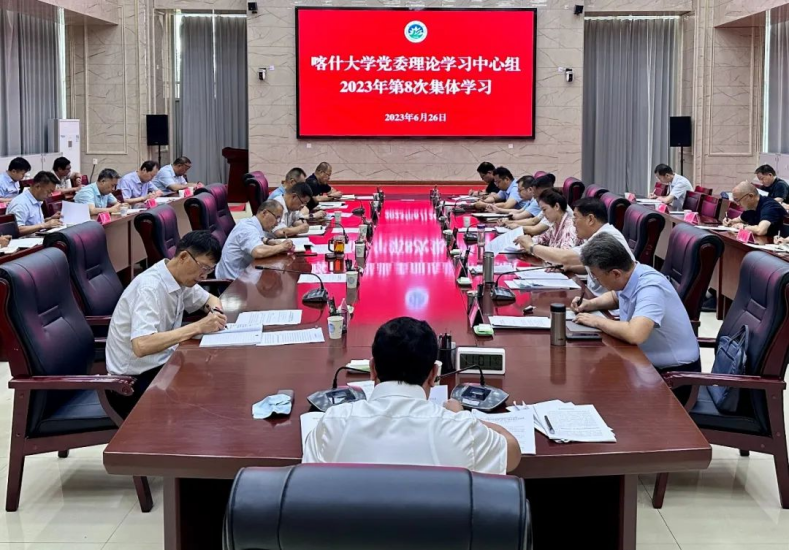 6月26日,喀什大学党委理论学习中心组举行2023年第8次集体学习(扩大)会议。校党委副书记、校长买买提明·木沙主持会议,在家校党委领导班子成员和各部门、各学院主要负责人参加学习。