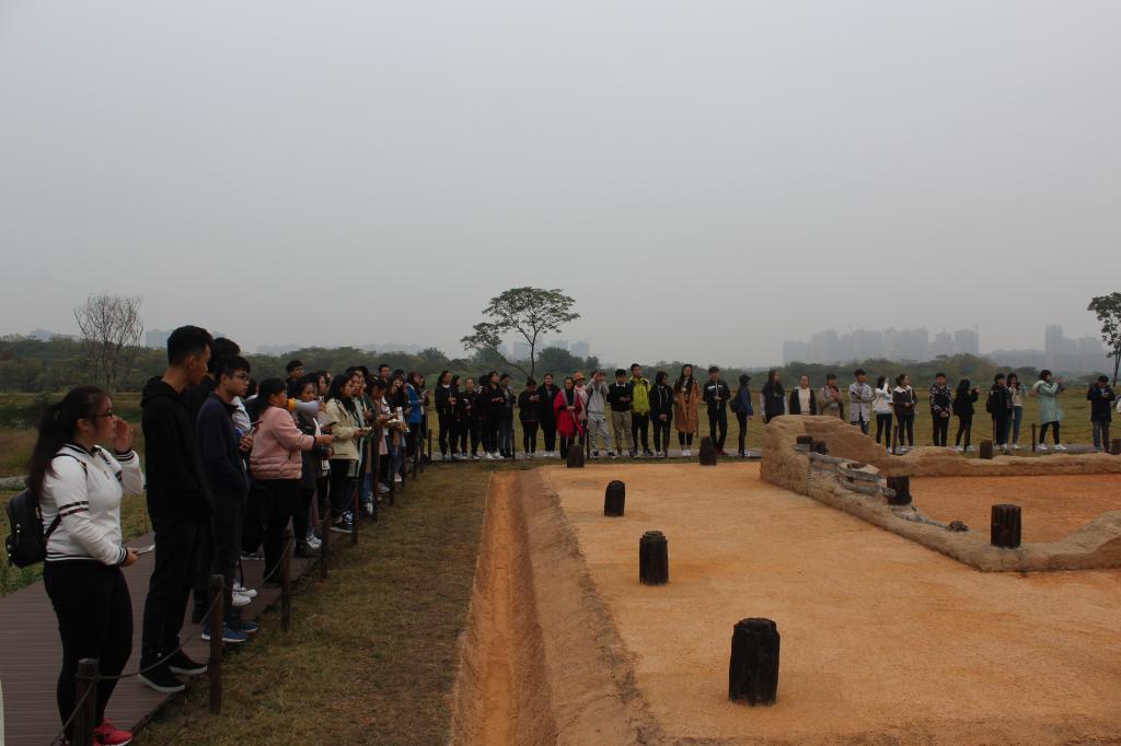 位于武汉市黄陂区盘龙湖畔的盘龙城遗址,兴建于公元前15世纪前后,相当于商代二里岗时期,是商代早期城址,被学界誉为武汉城市之根。当同学们聆听着博物馆老师的精彩讲解,透过橱窗观察盘龙城出土文物,信步走在拥有3500多年历史的古城墙遗址时,仿佛时光倒流,制作精美的大铜鼎、兽面纹盉、铜锁、铜提梁卣、长达94厘米的大玉戈……一一向我们诉说着悠远而神秘的商文化。保存完整的城墙基址、城门遗址、壕沟遗迹,城内东北角两座前后并列、坐北朝南的大型宫殿基址,使课堂上还显得有些模糊的“前朝后寝”、回廊厅堂宫殿布局豁然开朗,同学们对商代文明的发展程度有了一个全新的认识。