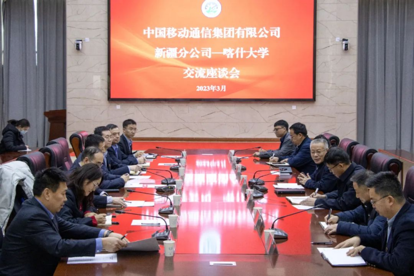 3月1日,中国移动通信集团有限公司新疆分公司党委书记、总经理蒋文隆一行来我校考察交流。喀什大学党委书记丁邦文,党委副书记邓勇,党委常委、统战部长宁立庆陪同考察并座谈。