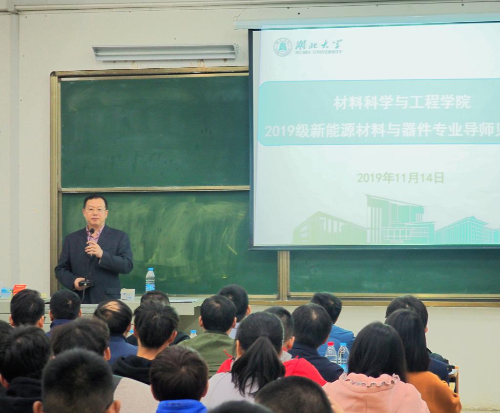 11月14日晚,材料科学与工程学院院长王贤保教授带队,新能源材料与器件专业系主任梅涛,雷丙龙、李金华等14位专业导师到阳逻校区,顺利举办2019级新能源材料与器件专业导师见面会。