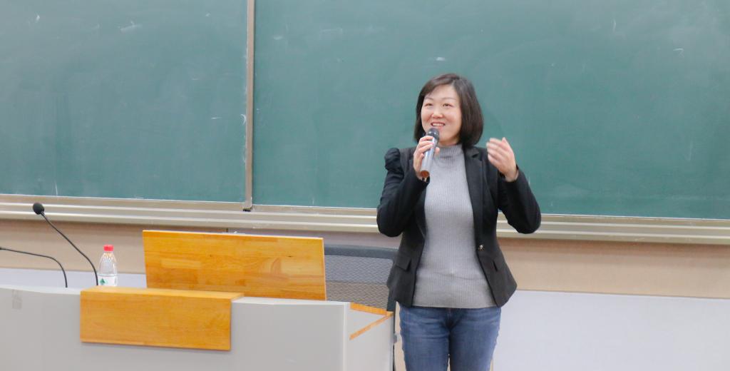 王晓玲详细介绍了物电学院特色学生活动及往届优秀毕业学生。她勉励同学们学会自主自律,贯彻终生学习的理念,“持续学习对于有些人只是在增加经验,但只有持续深度学习才能形成自己的知识体系,思维体系。”