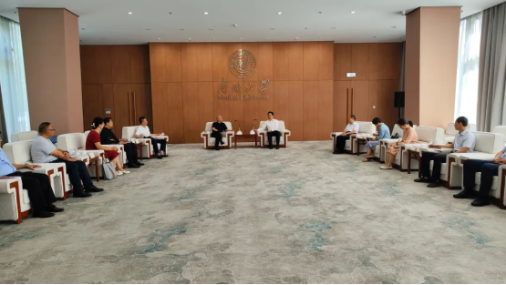 近日,校党委书记丁邦文,校党委常委、副校长罗浩波一行到南开大学考察学习。南开大学党委书记杨庆山在八里台校区海冰楼会见了丁邦文一行,副校长李靖陪同会见。
