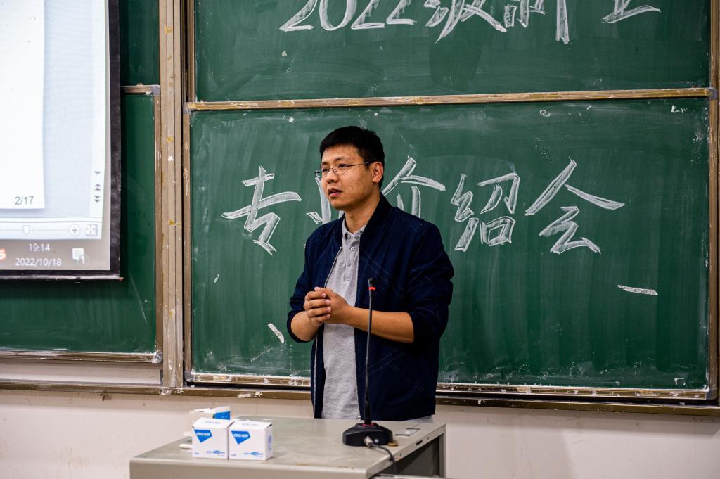 刘泱杰则首先向学生简要介绍了本专业的研究对象与主要研究方向。接着,他结合湖大光电研究情况向学生们展示了我校发光材料显示、光电探测器等具体科研项目,并欢迎同学报名加入光管研究组本科生科研项目——“追光计划”。在谈论到毕业生的就业率、就业去向时,夏晨引用武汉市就业第三方评价体系调研结果,指出我校毕业生具有良好的综合素养与能力。他与刘泱杰通过展示近两年微电子学院考研情况,激励同学们认真学习,在微电子领域成就更好的自己。